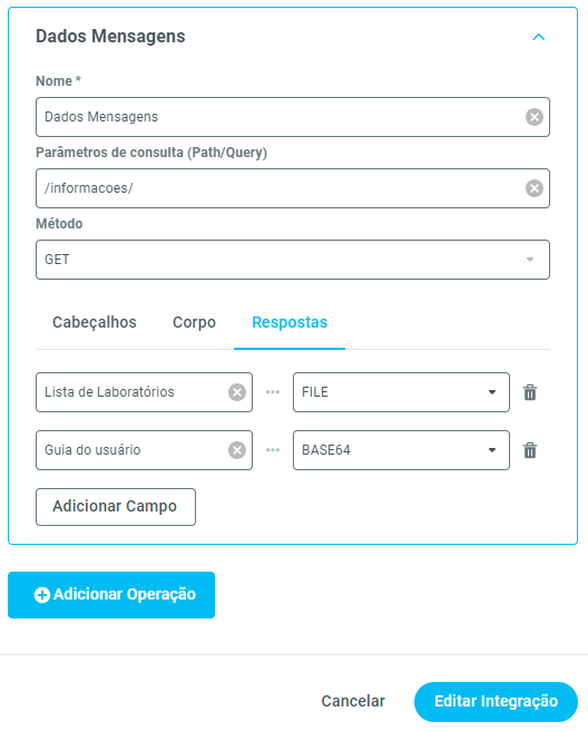 Para utilizar os arquivos de contexto, que serão acessados por meio de uma API é necessário utilizar a função Integração. Em caso de dúvidas como casdastrar uma Integração, utilize o artigo Integrações e suas subsessões.